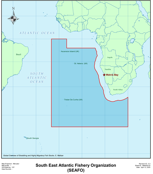 The Convention Area (Article 4) covers a sizeable part of the high seas of the South East Atlantic Ocean. It covers all waters beyond areas of national jurisdiction in the region bounded by a line joining the following points along parallel of latitude and meridians of longitude: