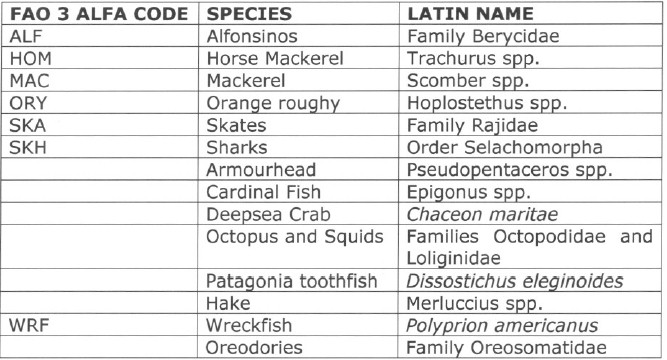 (d) The report shall include exiting date, time, geographical position of the vessel, the number of fishing days and the catch taken by species (FAO 3 Alfa Code) and by live weight (Kg) in the Convention Area since the commencement of fishing in the Convention Area, or since the last catch report; and (e) Trans-shipment report. This report shall be made no more than 12 hours after each trans-shipment and shall include the date, the time, and species (FAO 3 Alfa Code) and live weight (Kg), trans-shipped. This report should include the quantities by species on-loaded and off-loaded for each trans-shipment of fish during the vessel's stay in the Convention Area.