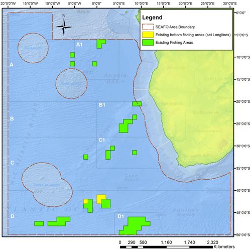 SEAFO defined bottom fishing activities, existing bottom fishing areas, new bottom fishing areas and exploratory fisheries. SEAFO mapped existing bottom fishing areas within the Convention Area for bottom fishing activities occurring between 1987-July 2011. Mapping of bottom trawling activity was given priority when delineating SEAFOs fishing footprint. The map and coordinates of existing bottom fishing areas and new fishing areas is contained in CM 30/15. The Commission revises, as appropriate, SEAFOs existing fishing areas on an annual basis.